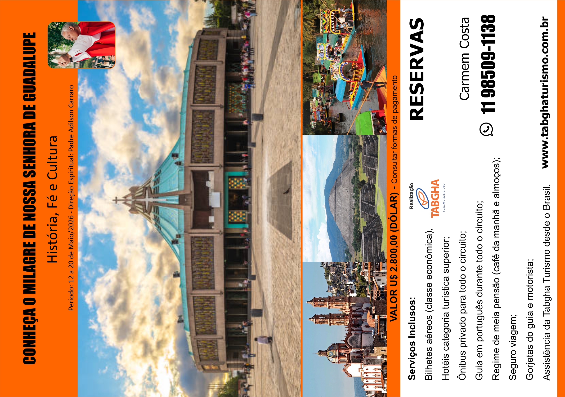 Convidamos você para uma viagem inesquecível para conhecer o Milagre de Guadalupe, com Direção Espiritual Pe. Adilson Carraro. Confira a programação e garanta a sua passagem.